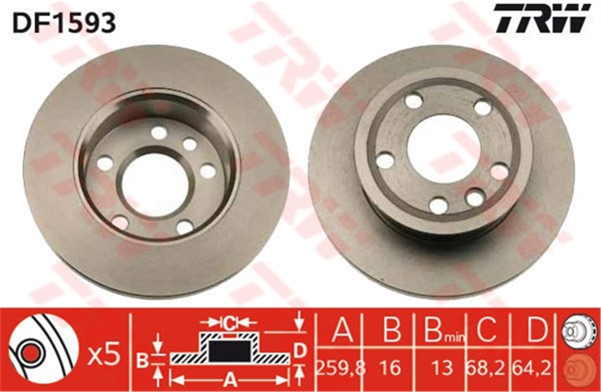ÖN FREN AYNASI VW TRANSPORTER T4 1.8-1.9D-TD-TDI-2.0-2.4D-2.5TDI 90-97 14 JANT TRW DF1593 TRW MARKA ÜRÜN KODU TRW DF1593